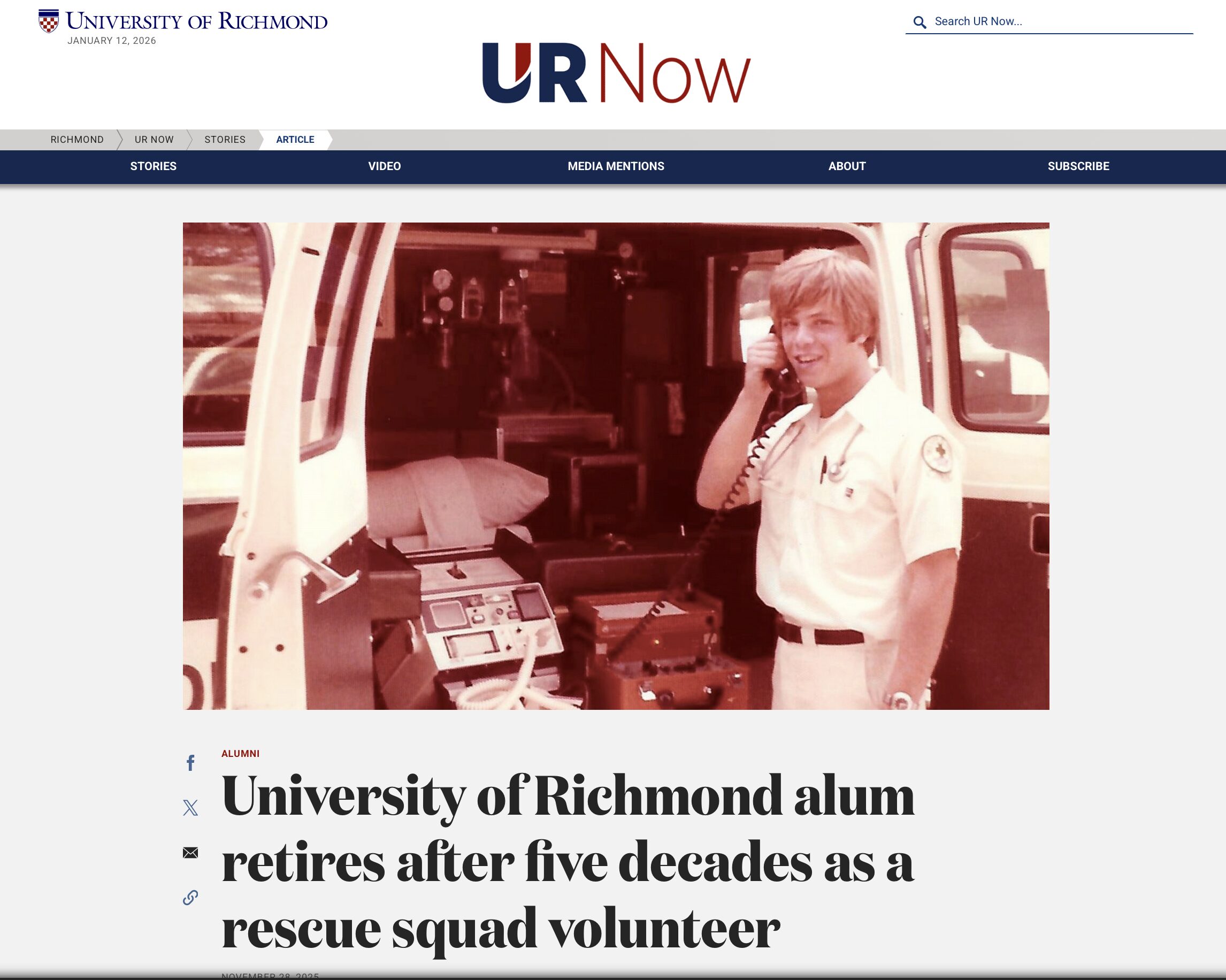 University of Richmond alum retires after five decades as a rescue squad volunteer